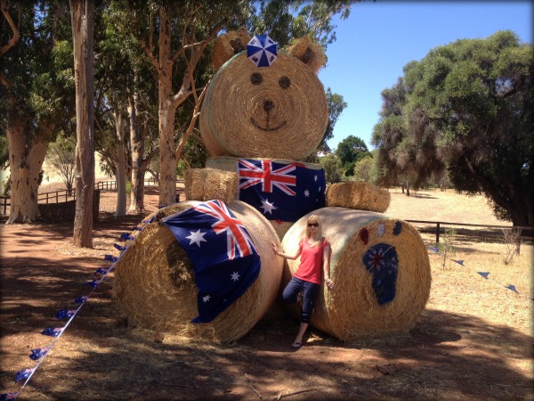 Helen that is beautiful. We have hay bale art here in South Australia as well. I have seen Teddy Bears, but not dressed for Australia day. I hope you enjoyed a lovely day together.